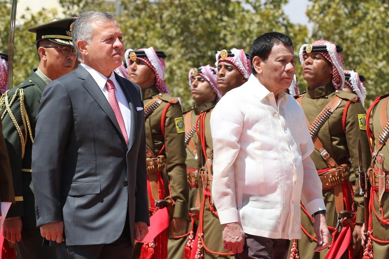 President Duterte proceeded to Jordan from Israel, where he was on a four-day official visit.