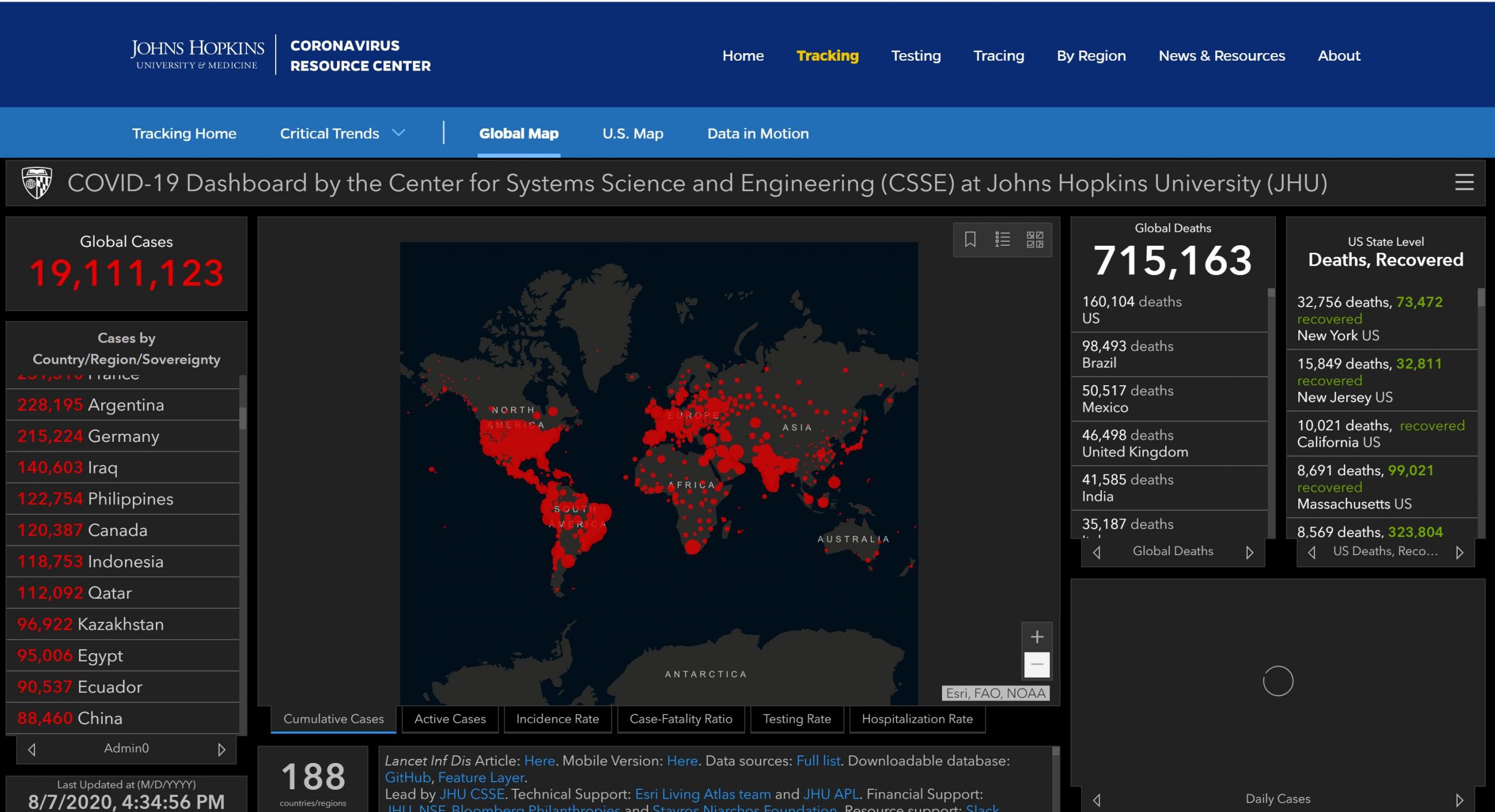 Confirmed virus cases worldwide topped 19 million, with COVID related deaths reaching more than 715,000 as of Friday, Aug. 7.