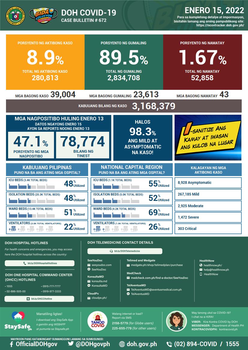 According to the DOH, all laboratories were operational on January 13, 2022 while eight labs did not submit data to the COVID-19 Document Repository System.