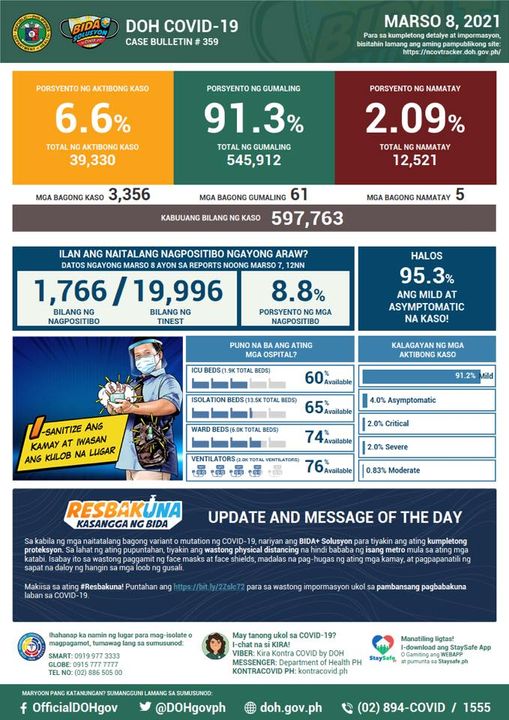 (Eagle News) — COVID-19 cases in the Philippines reached 597,763 after the Department of Health reported 3356 additional cases.