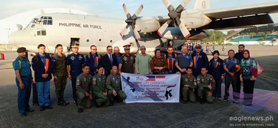 (Eagle News) — The Philippines on Wednesday, October 10 sent off to Indonesia much needed supplies and humanitarian assistance for the victims affected by the 7.5 magnitude earthquake and tsunami that hit the country on September 28.