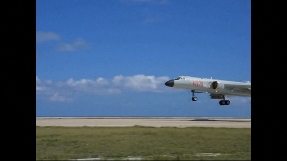 China has for the first time landed several bombers on an island in the disputed South China Sea, a move that could provoke renewed tensions between countries bordering the strategically vital maritime region. (Photo grabbed from CCTV sourced video)