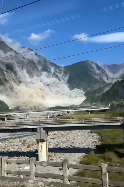 This photo taken by Taiwan’s Central News Agency (CNA) on April 3, 2024 shows a damaged building in Hualien, after a major earthquake hit Taiwan’s east. A major 7.4-magnitude earthquake hit Taiwan on the morning of April 3, prompting tsunami warnings for the self-ruled island as well as parts of southern Japan and the Philippines. (Photo by CNA / AFP)TOPSHOT – This photo taken by Taiwan’s Central News Agency (CNA) on April 3, 2024 shows people looking at a damaged building in Hualien, after a major earthquake hit Taiwan’s east. A major 7.4-magnitude earthquake hit Taiwan’s east on the morning of April 3, prompting tsunami warnings for the self-ruled island as well as parts of southern Japan and the Philippines. (Photo by CNA / AFP)This screengrab taken from video footage captured by an onlooker shows rockfall from a mountain near Kanan bridge in Hualien county on April 3, 2024 after a major earthquake hit Taiwan’s east. A major 7.4-magnitude earthquake hit Taiwan’s east on the morning of April 3, prompting tsunami warnings for the self-ruled island as well as parts of southern Japan and the Philippines. (Photo by UGC / AFP)This photo taken and released by Taiwanís Central News Agency (CNA) on April 2, 2024 shows commuters on a Taipei Mass Rapid Transit (MRT) platform as a train has stop during a 7.4 magnitude earthquake in Taipei. (Photo by CNA / AFP)This UGC handout from a user known as Way shows a damaged building in Hualien on April 3, 2024, after a major earthquake hit Taiwan’s east. – A major 7.4-magnitude earthquake hit Taiwan’s east on the morning of April 3, prompting tsunami warnings for the self-ruled island as well as parts of southern Japan and the Philippines. (Photo by Way / UGC / AFP)This UGC handout from a user known as Xiaohe shows damage to a building in the National Hualien Girls’ High School in Hualien on April 3, 2024, after a major earthquake hit Taiwan’s east. – A major 7.4-magnitude earthquake hit Taiwan’s east on the morning of April 3, prompting tsunami warnings for the self-ruled island as well as parts of southern Japan and the Philippines. (Photo by Xiaohe / UGC / AFP)