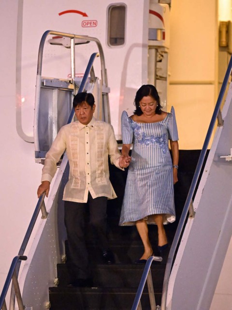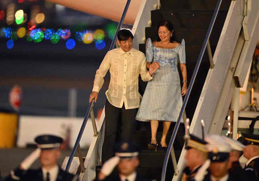 Philippine President Ferdinand Marcos, Jr., and First Lady Louise Araneta-Marcos arrive at San Francisco International Airport in San Francisco, California, on November 14, 2023, as he arrives to attend the Asia-Pacific Economic Cooperation (APEC) leaders’ week. The APEC Summit takes place through November 17.