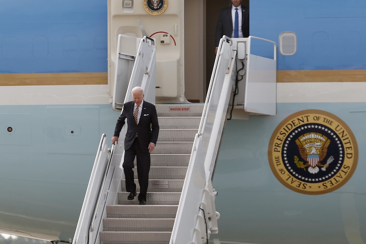 President of the United States of America H.E. Joe Biden disembarks from a special aircraft upon his arrival at Phnom Penh International Airport this morning to attend the 10th ASEAN-U.S. Summit and 17th East Asia Summit (EAS) in Phnom Penh capital city.