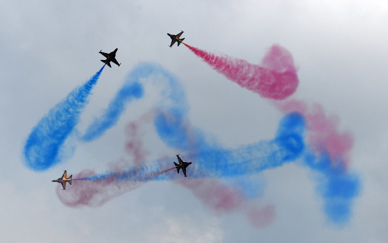 The South Korean team uses the KAI T-50 Golden Eagle plane, a supersonic advanced trainer and light combat aircraft developed by Korea Aerospace Industries with US firm Lockheed Martin.