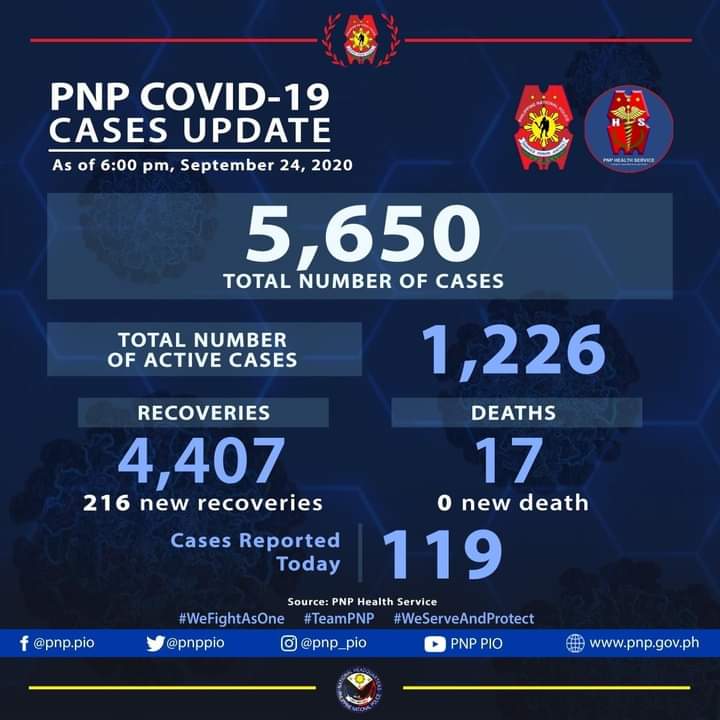 Over 100, or 119, additional COVID-19 cases pushed the PNP COVID-19 tally to 5650.