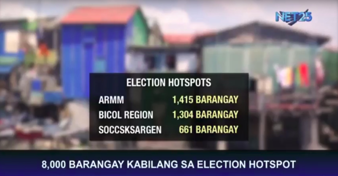 (Eagle News) – The Philippine National Police said so far, almost 8000 barangays were included in its list of election hotspots.