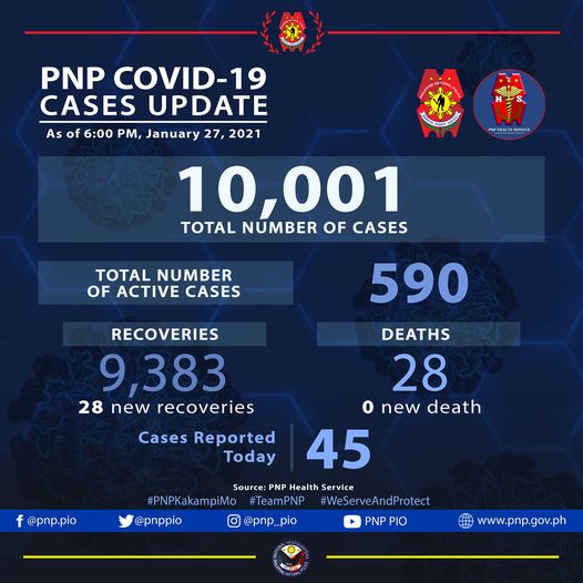 No additional deaths were reported, which means the PNP COVID-19 death toll remains at 28.