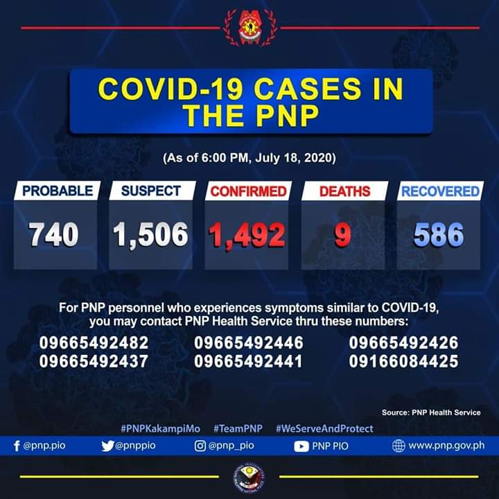 (Eagle News)–The number of COVID-19 cases in the Philippine National Police has reached 1492.