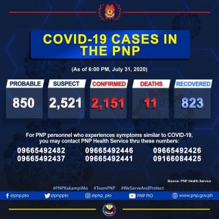 (Eagle News) — The number of coronavirus disease 2019 cases in the Philippine National Police has reached 2151.