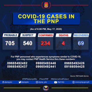 The number of COVID-19 cases in the PNP has reached 234. The PNP said the figure was as of Sunday, May 17./PNP/