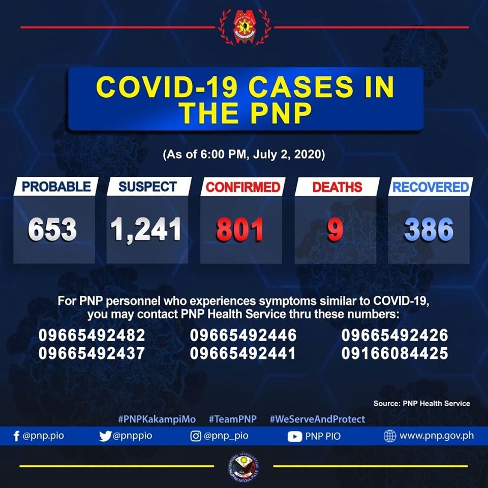 According to the PNP, the 801 confirmed COVID-19 cases was as of July 2, 6 p.m.