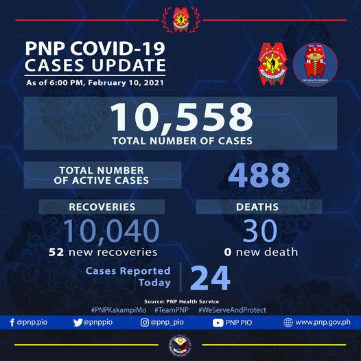 Twenty-four additional cases pushed the PNP COVID-19 cases to 10558.