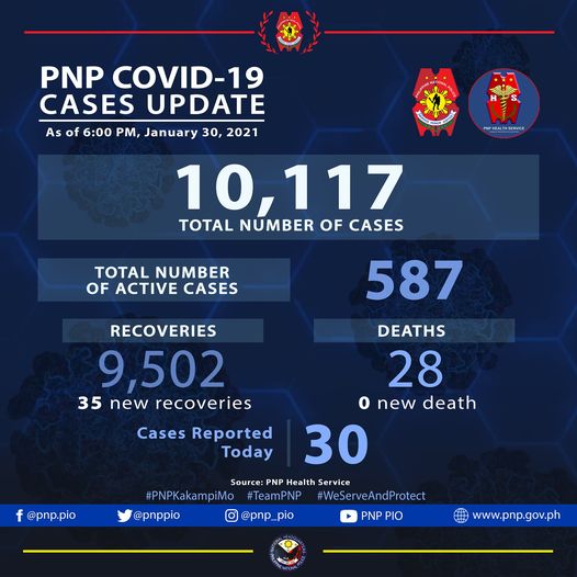 No additional deaths were reported, which means the PNP COVID-19 death toll remains at 28.