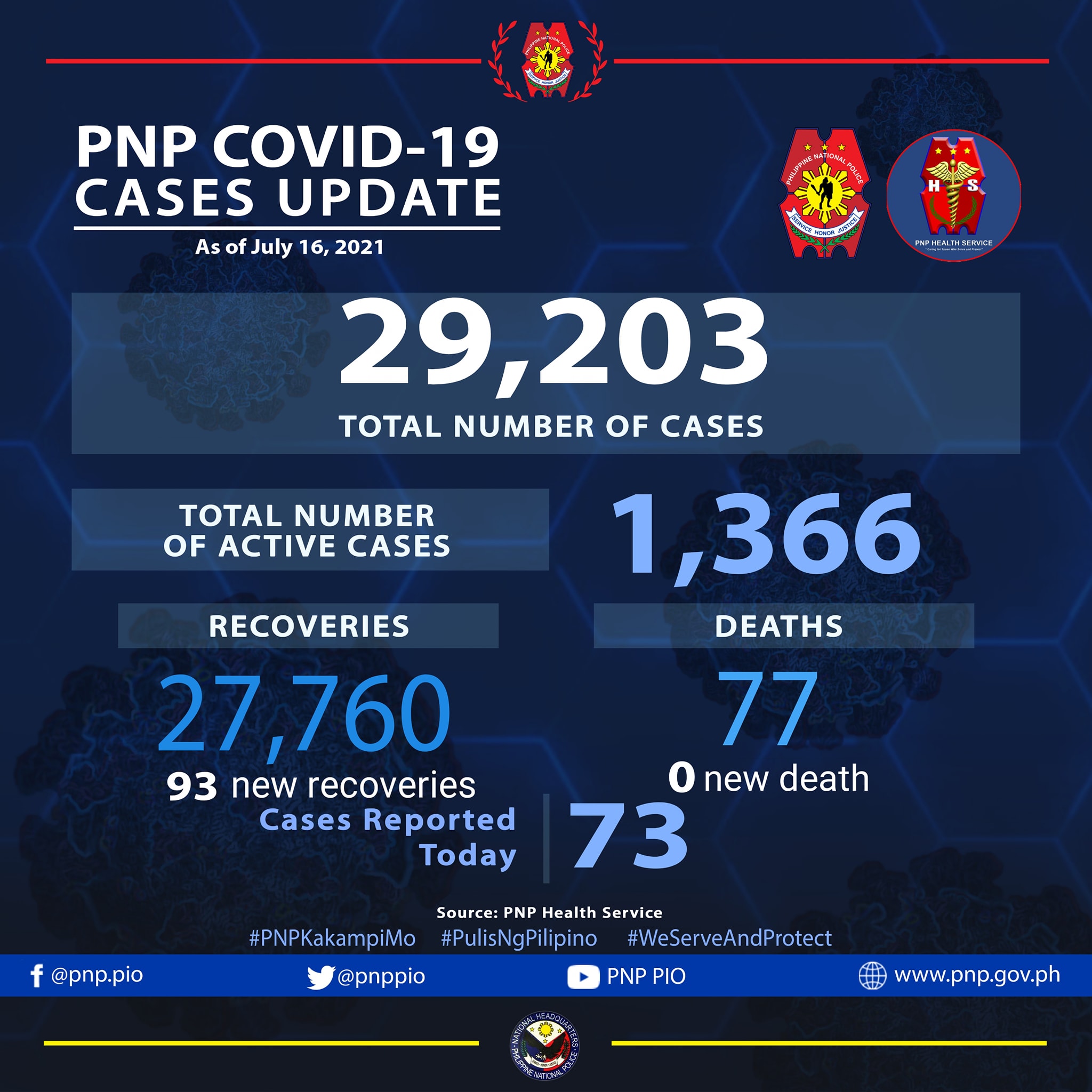 (Eagle News) — Seventy-three more COVID-19 cases were reported among police personnel.
