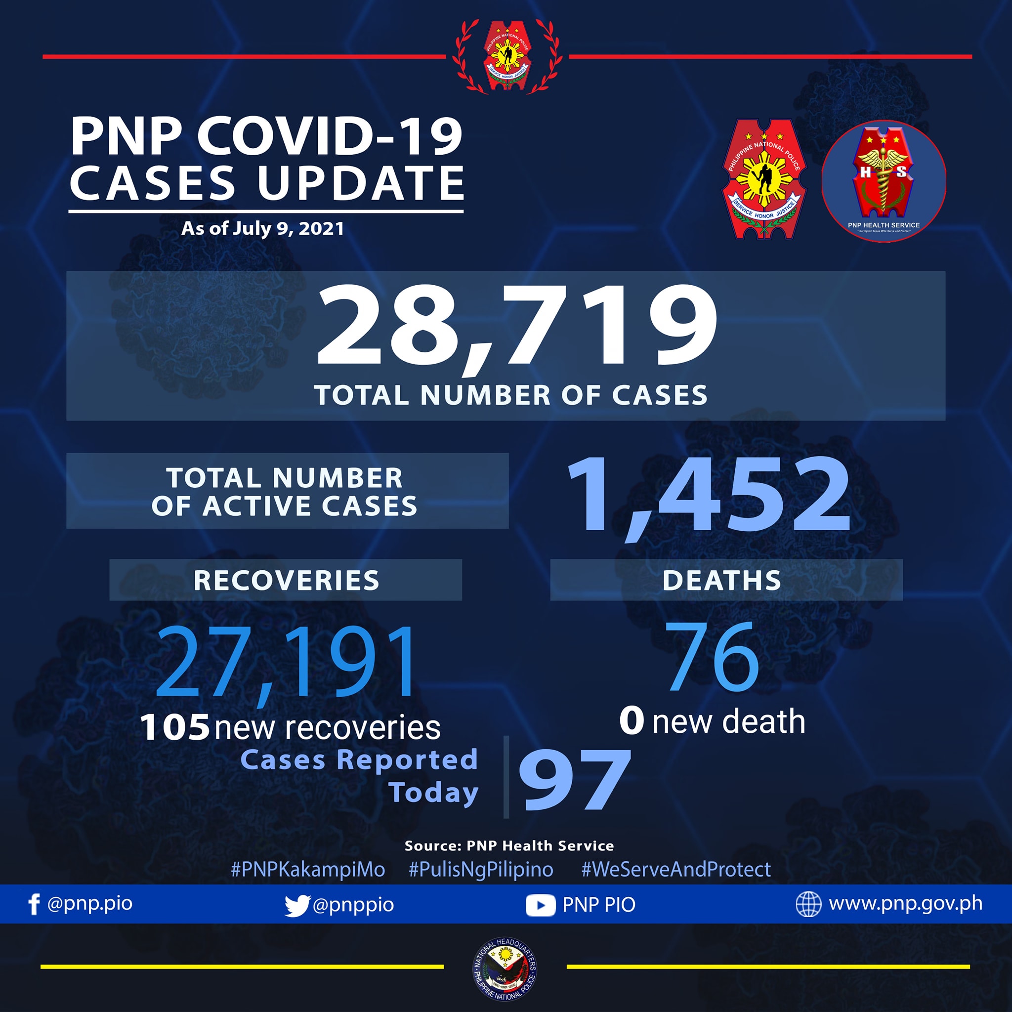 According to PNP data, 97 more COVID-19 cases pushed the PNP COVID-19 total to 28719.