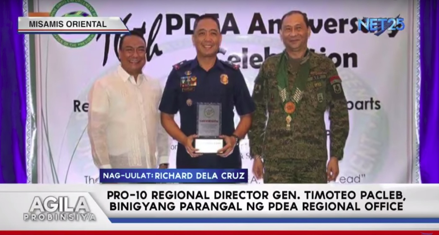 CAGAYAN DE ORO CITY, Misamis Oriental (Eagle News) – Tumanggap ng Commendation Award si PNP Regional Director Gen. Timoteo Pacleb mula kay PDEA Regional Director Wilkins Villanueva sa isinagawang 16th PDEA Anniversary Celebration nitong Martes, Hunyo 12.