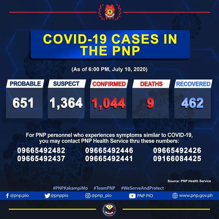 The PNP said the 1044 cases were as of July 10, 6 p.m.