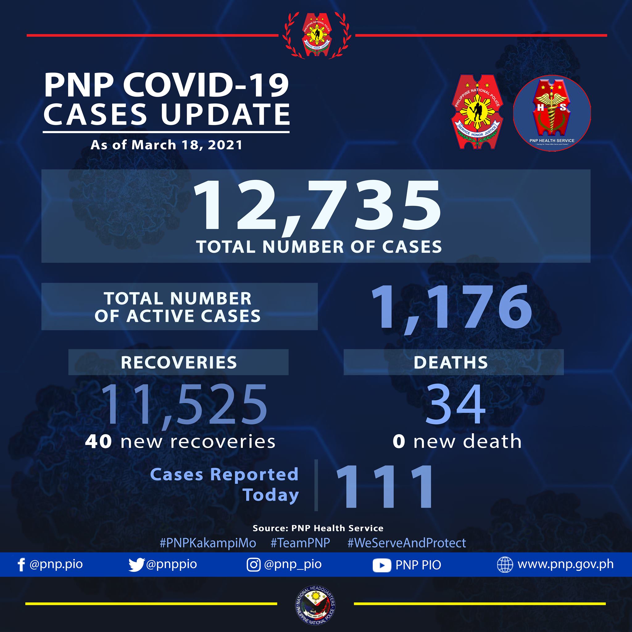 No additional death was reported, which means the PNP COVID-19 death toll remains at 34.