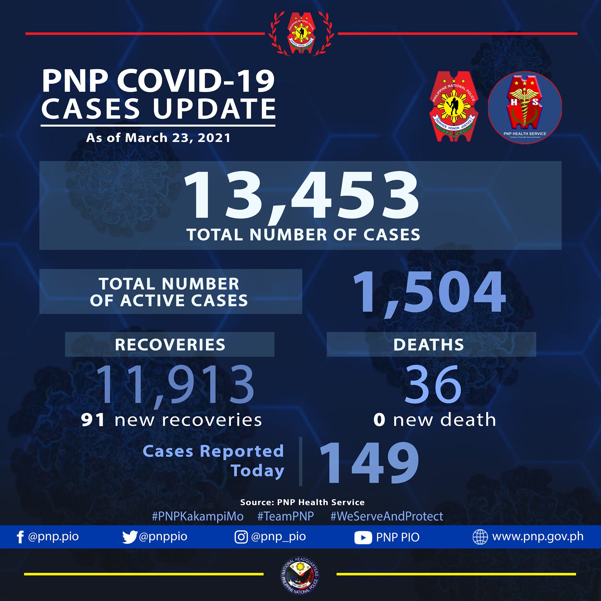 No additional deaths were reported, which means the PNP COVID-19 death toll remains at 36.