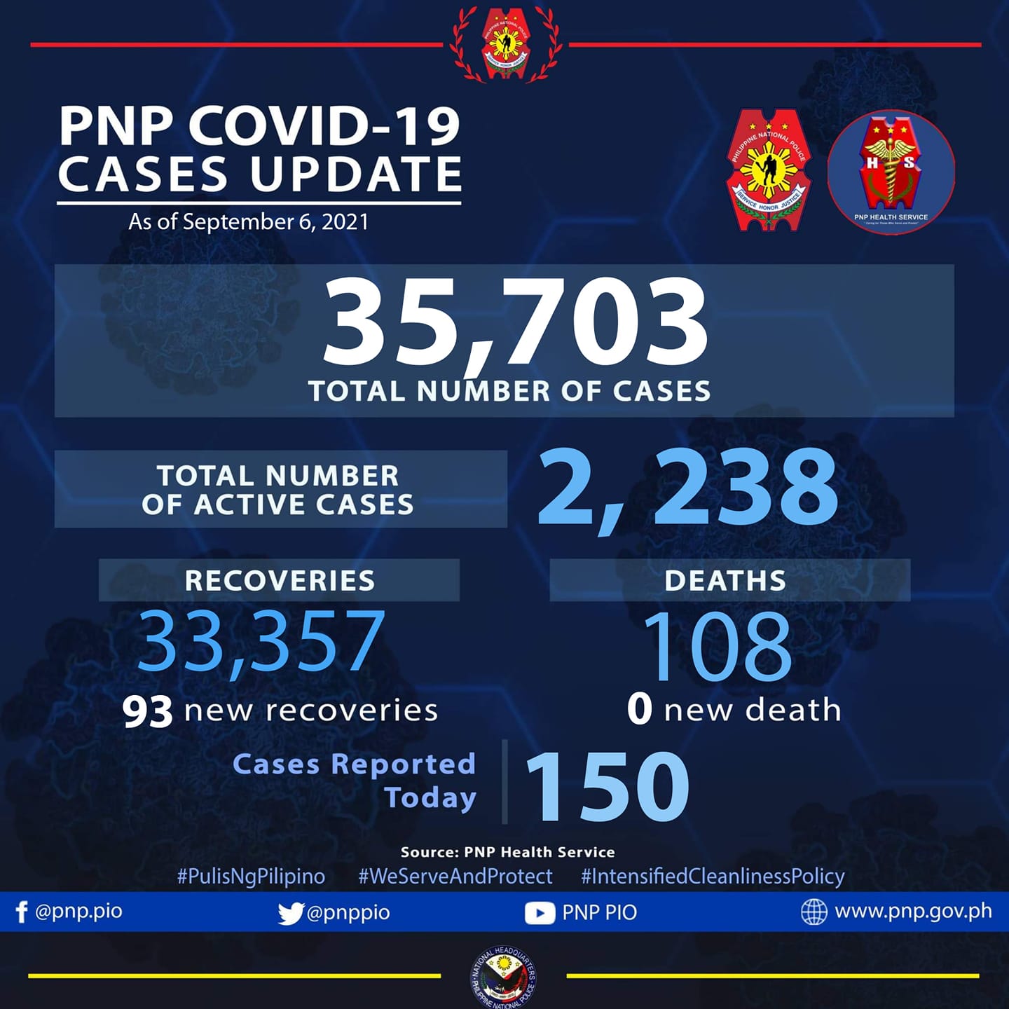 According to the Philippine National Police, the additional cases pushed the PNP COVID-19 total to 35703.