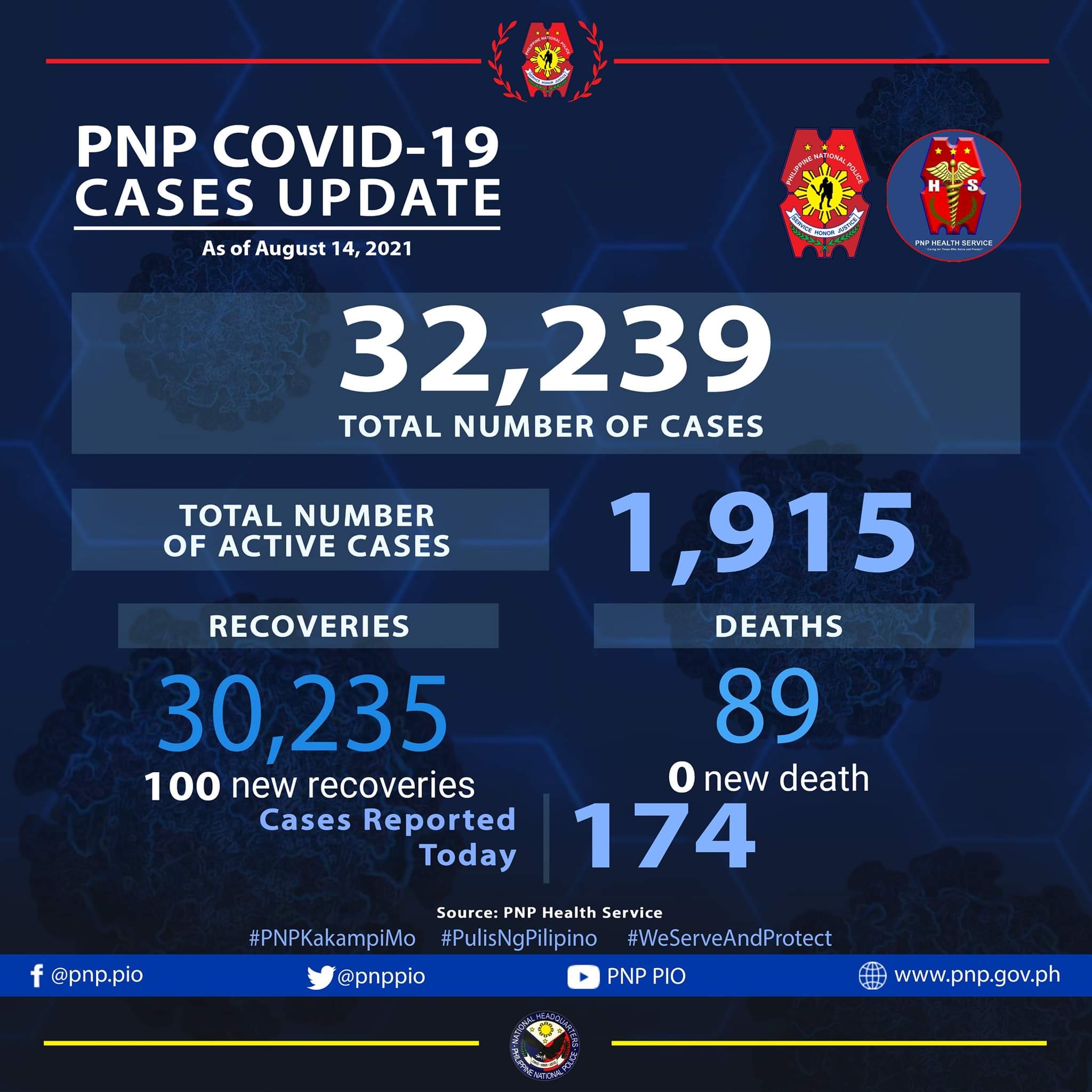 According to Philippine National Police data, the 174 additional cases pushed the total cases to 32239.