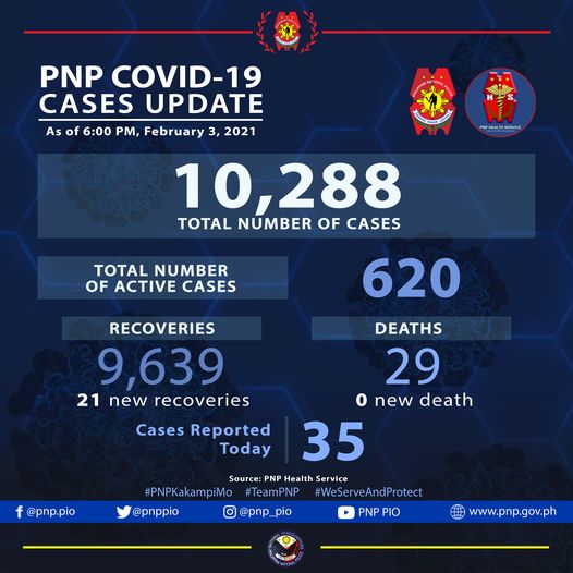 Thirty-five additional cases, however, pushed the COVID-19 cases among police personnel to 10288.