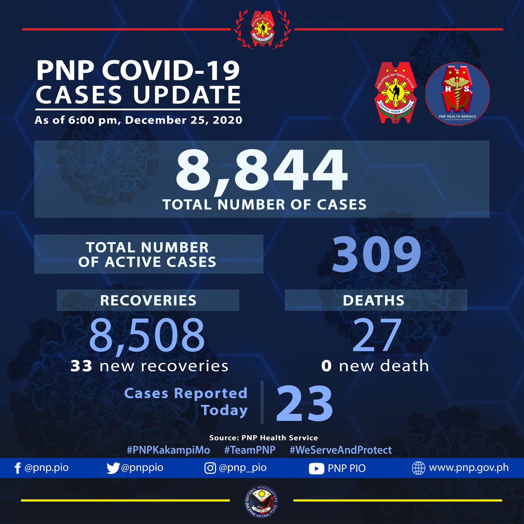 No additional deaths were reported, which means the PNP COVID-19 death toll remains at 27.