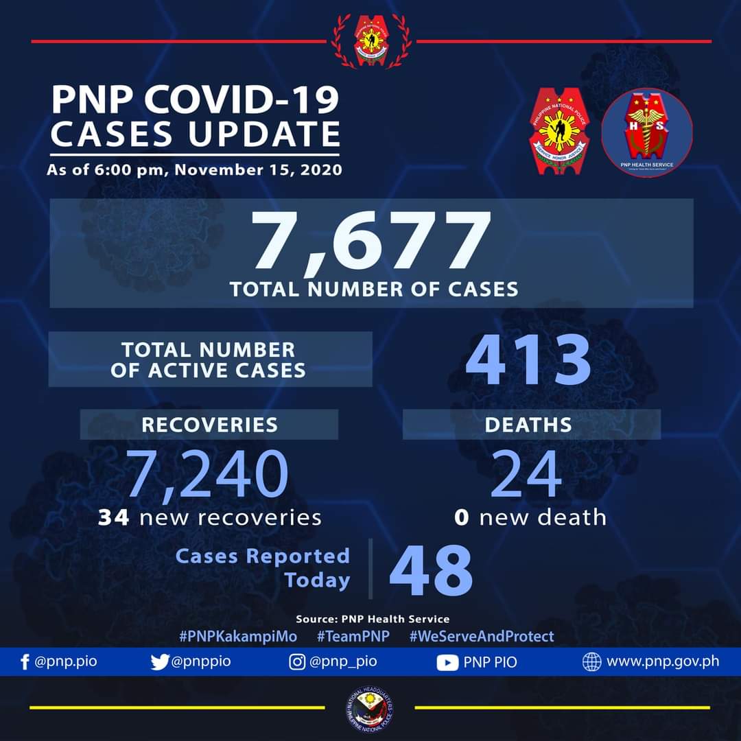 Thirty-four more police personnel have recovered from COVID-19, the PNP said./PNP/