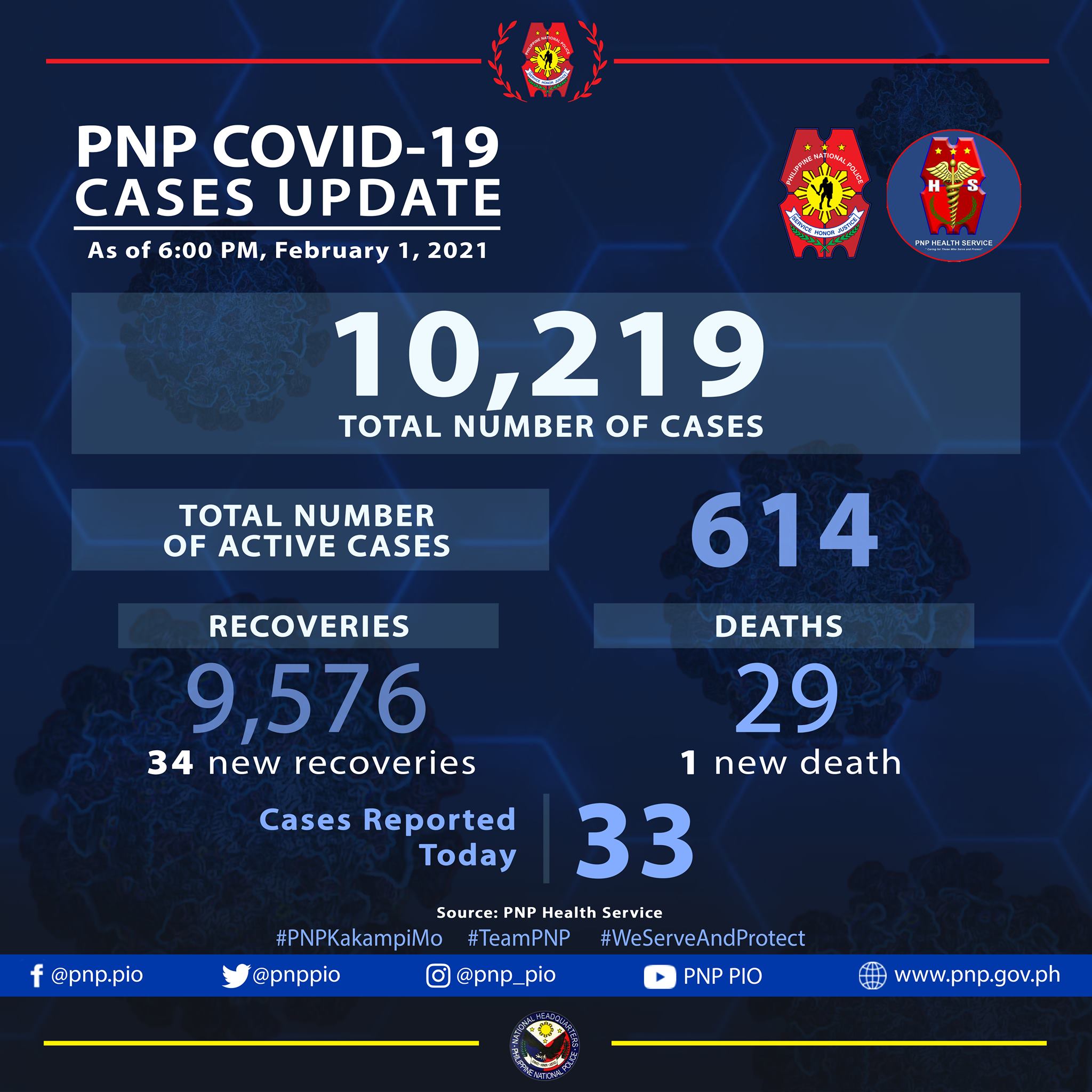 Thirty-three additional cases, however, also pushed the PNP COVID-19 total to 10,219.
