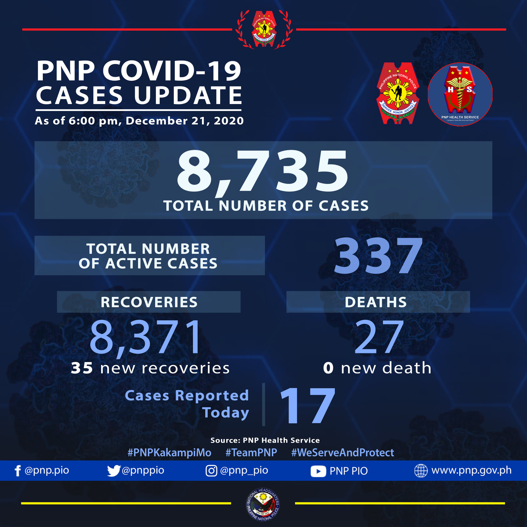Seventeen additional cases, however, pushed the total COVID-19 cases among police personnel to 8735.