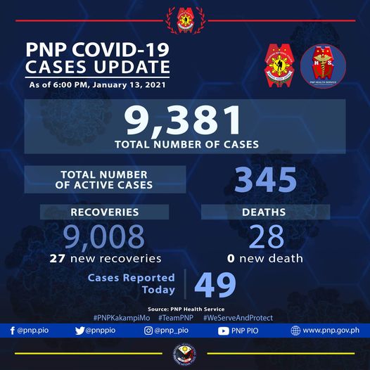 Forty-nine more cases, however, also pushed the COVID-19 total among police personnel to 9381.