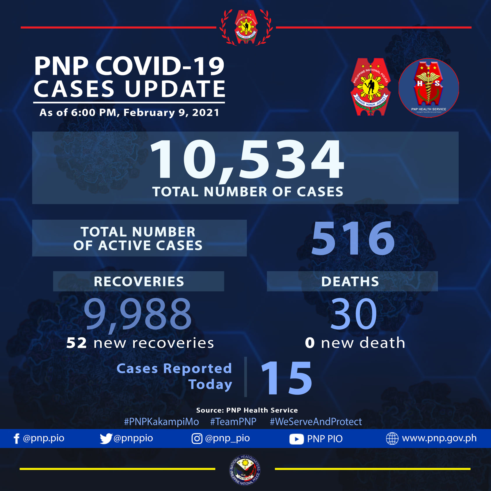 No additional deaths were reported, which means the PNP COVID-19 death toll remains at 30.