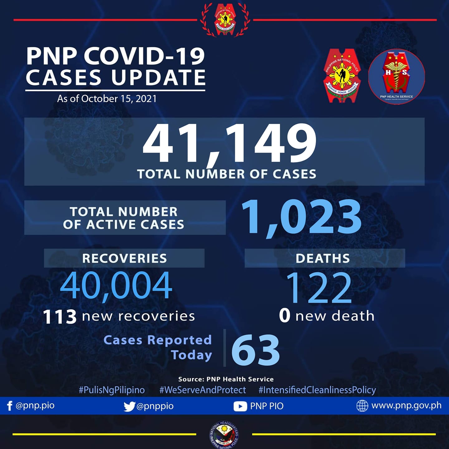 No additional deaths were reported, which means the PNP COVID-19 death toll remains at 122.