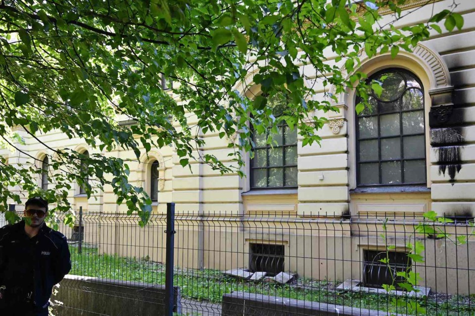 An AFP journalist at the scene saw a black stain across a window that appeared to have been caused by flames, but there was no major damage to the synagogue.