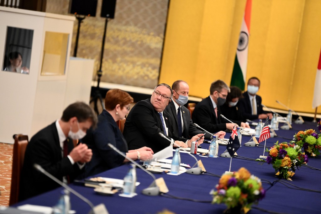 The top US diplomat is meeting his Japanese, Australian and Indian counterparts on a trip that was scaled back after President Donald Trump and a raft of staff and advisors contracted coronavirus.