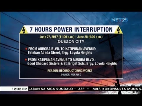 QUEZON City, Philippines – The Manila Electric Co. has advised its customers that there would be a thirty-minute power interruption in several parts of Quezon City.