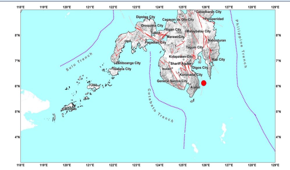 The tectonic quake’s epicenter was located 26 kilometers southeast of Don Marcelino, Davao Occidental and had a depth of focus of 143 kilometers.
