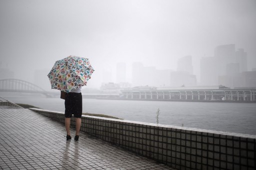 A powerful typhoon hurtled towards Japan on July 28, prompting local authorities to issue early evacuation orders, with western areas recently devastated by floods and landslides in the storm’s crosshairs. / AFP PHOTO / Martin BUREAU