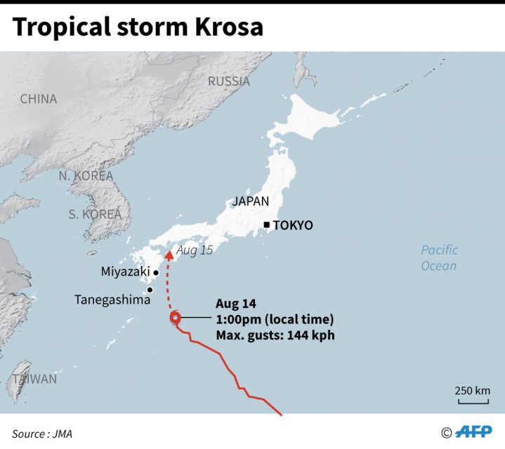 Krosa also sparked travel chaos as people returned to major cities following the Obon holiday.