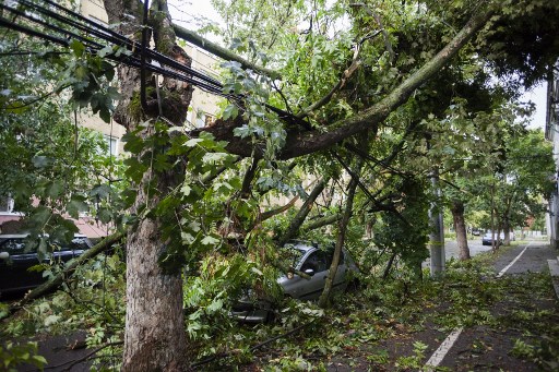 BUCHAREST, Romania (AFP) — A storm packing powerful winds ripped off roofs and toppled trees in Romania on Sunday, killing eight people and injuring dozens more, authorities and witnesses said.