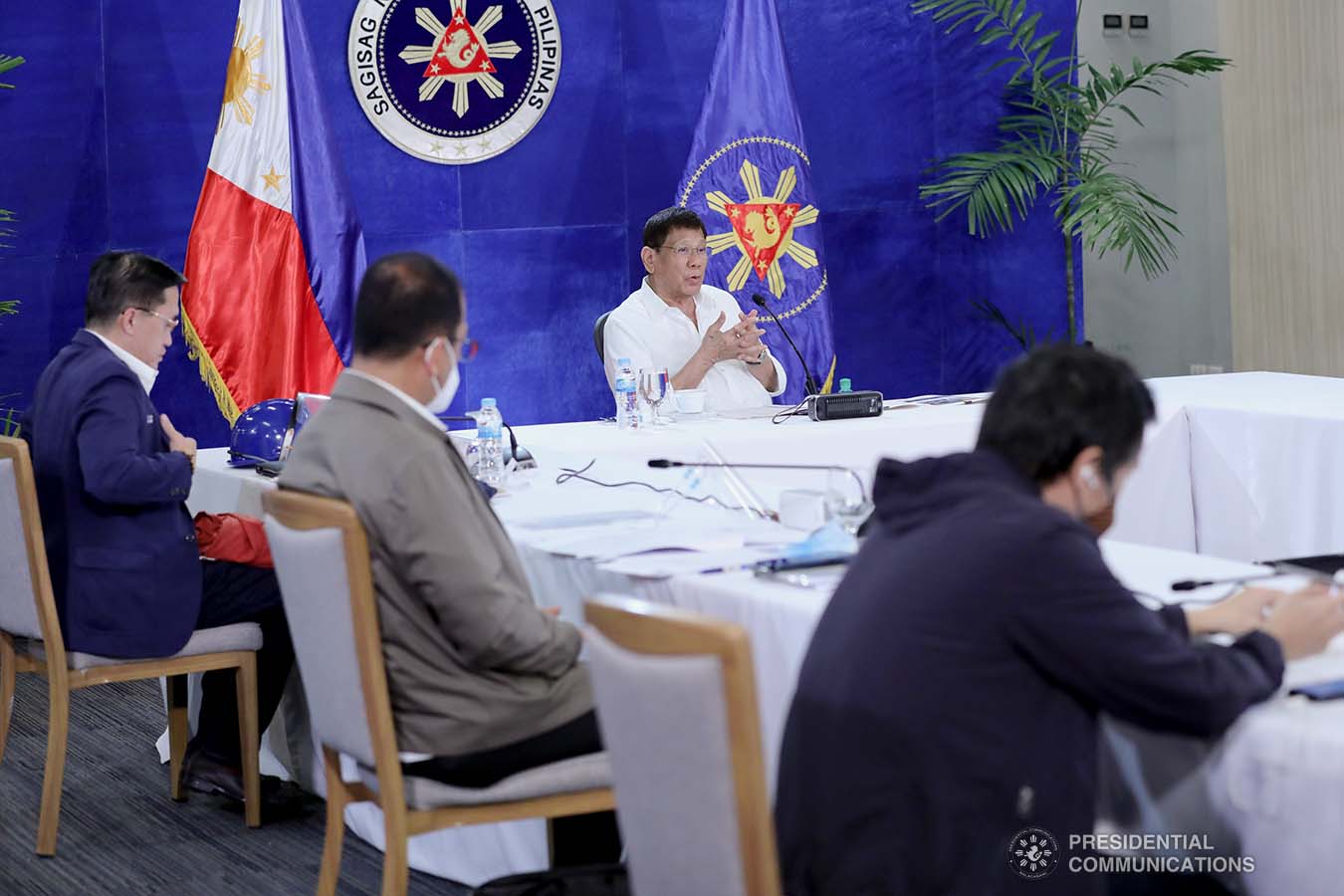 President Rodrigo Roa Duterte presides over a meeting with the Inter-Agency Task Force on the Emerging Infectious Diseases (IATF-EID) core members prior to his talk to the people at the Arcadia Active Lifestyle Center in Matina, Davao City on September 22, 2021. ARMAN BAYLON/ PRESIDENTIAL PHOTO
