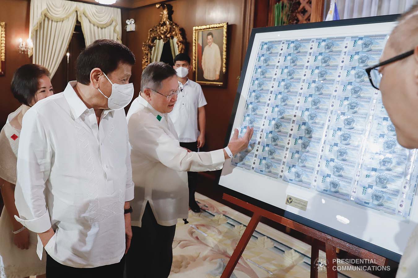 The new P1,000 polymer banknote was presented to President Rodrigo Duterte on Wednesday, April 6, by Bangko Sentral ng Pilipinas (BSP) Governor Benjamin E. Diokno and Monetary Board members in a ceremony held in Malacanang.