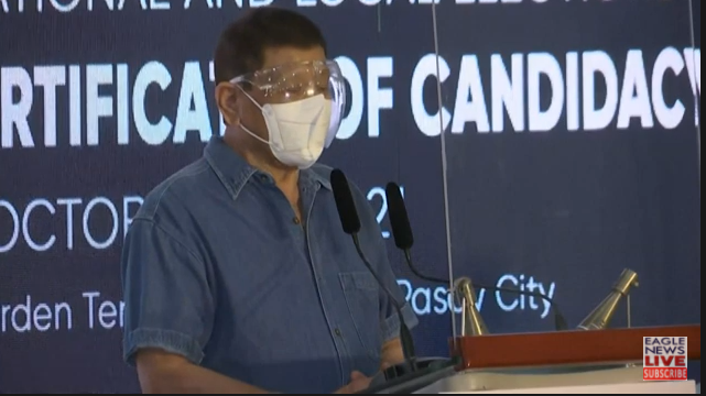 (Eagle News) — President Rodrigo Duterte announced on Saturday, Oct. 2, that he will not run for vice president in 2022 anymore and will retire from politics, saying he was heeding the sentiment of Filipinos.