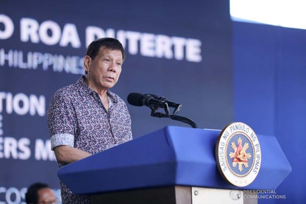 President Rodrigo Roa Duterte delivers his speech during the inauguration of the newly constructed Narvacan Farmers Market in Barangay San Antonio, Narvacan in Ilocos Sur on March 4, 2022. (Malacanang photo)