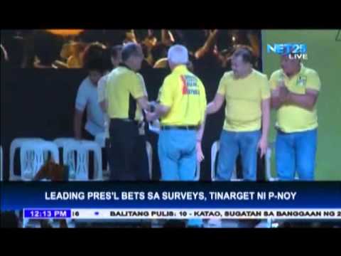 MANILA, Philippines – In the Liberal Party proclamation rally of local candidates held at Plaza Miranda, President Benigno S. Aquino criticized the statements made by leading presidential candidates at the Presidential Debate held in Cebu. In particular, President Aquino targeted Davao City Mayor Rodrigo Duterte, Senator Grace Poe and Vice President Jejomar Binay.