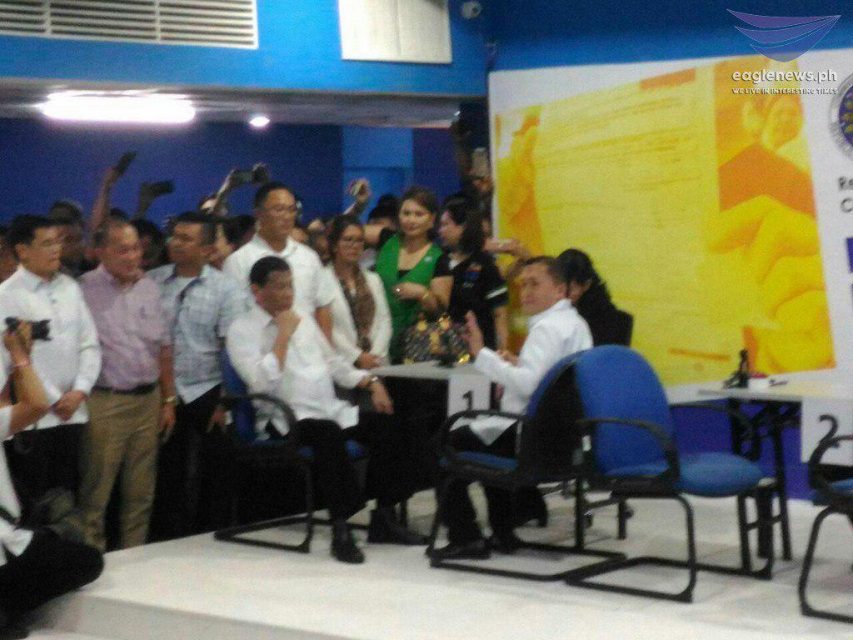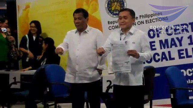 (Eagle News) — No less that President Rodrigo Duterte accompanied his special assistant Christopher “Bong” Go when he filed his certificate of candidacy at past 4 p.m. Monday, October 15, at the Commission on Elections (Comelec) main office in Intramuros, Manila.