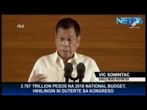 Duterte will ask Congress for a Php 3.767 trillion national budget for 2018 in his second State of the Nation Address (SONA) to be held on July 24, he said.