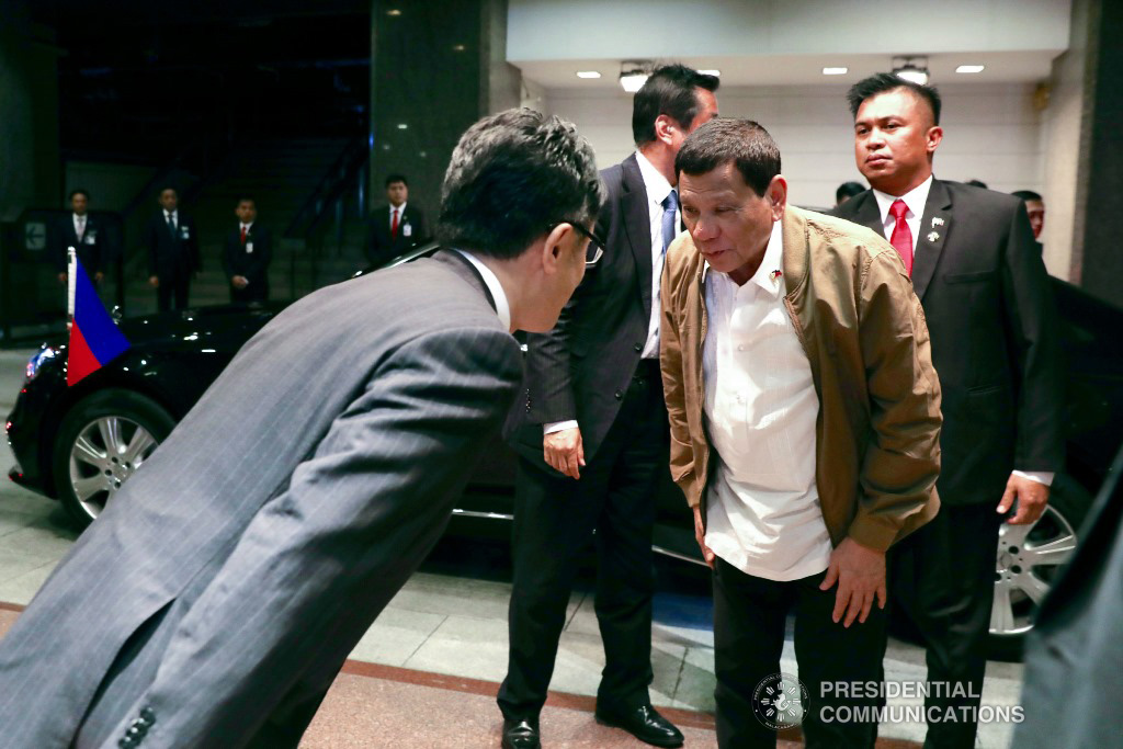 Upon arrival at the airport, President Duterte proceeded to the Imperial Hotel in Tokyo for the first day of his visit to Japan. Included in his delegation are 16 cabinet members and other officials and business executives.